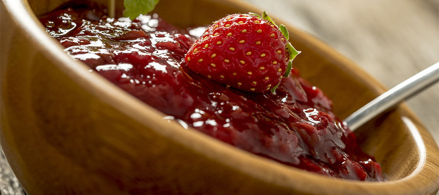 Ces bonbons de paradis que sont les fraises sont moulinés en coulis, que l’on additionne d’un peu de sucre et d’un gélifiant. Cet ajout permettra de limiter la cuisson à un instant. Un coup d’ébullition et on empote